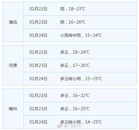 廣東21個(gè)地市的天氣預(yù)告