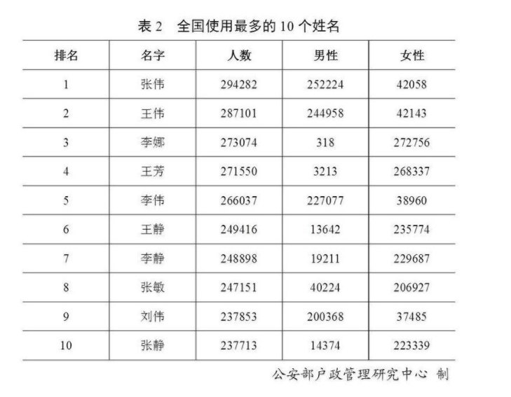 全國戶籍人口中,有30萬個(gè)“張偉”、27萬個(gè)“李娜”…