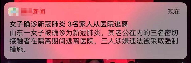 見圳客戶端?深圳新聞網(wǎng)2020年1月30日訊(見圳客戶端、深圳新聞網(wǎng)記者 張玲)這個春節(jié),有點不一樣。疫情當前,需要全民齊努力。前不久一條新聞彈窗,相信很多人都看到了:山東一女子被確診為新型冠狀病毒感染的肺炎,她的老公等三名密切接觸者在隔離期間逃離醫(yī)院,三人涉嫌違法被采取強制措施。