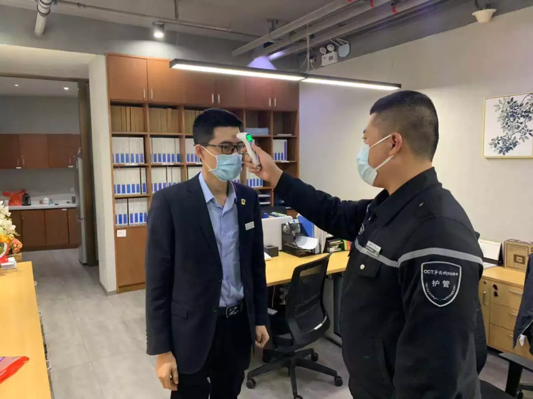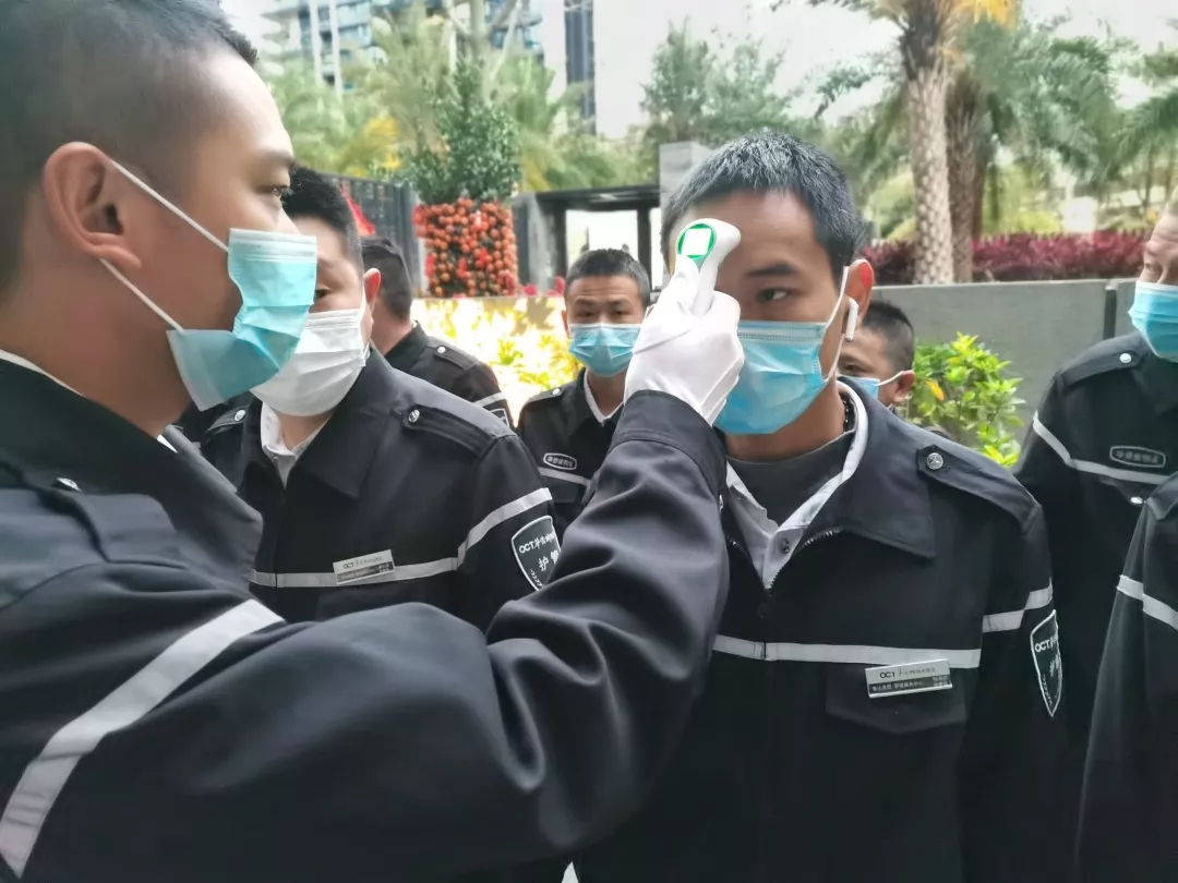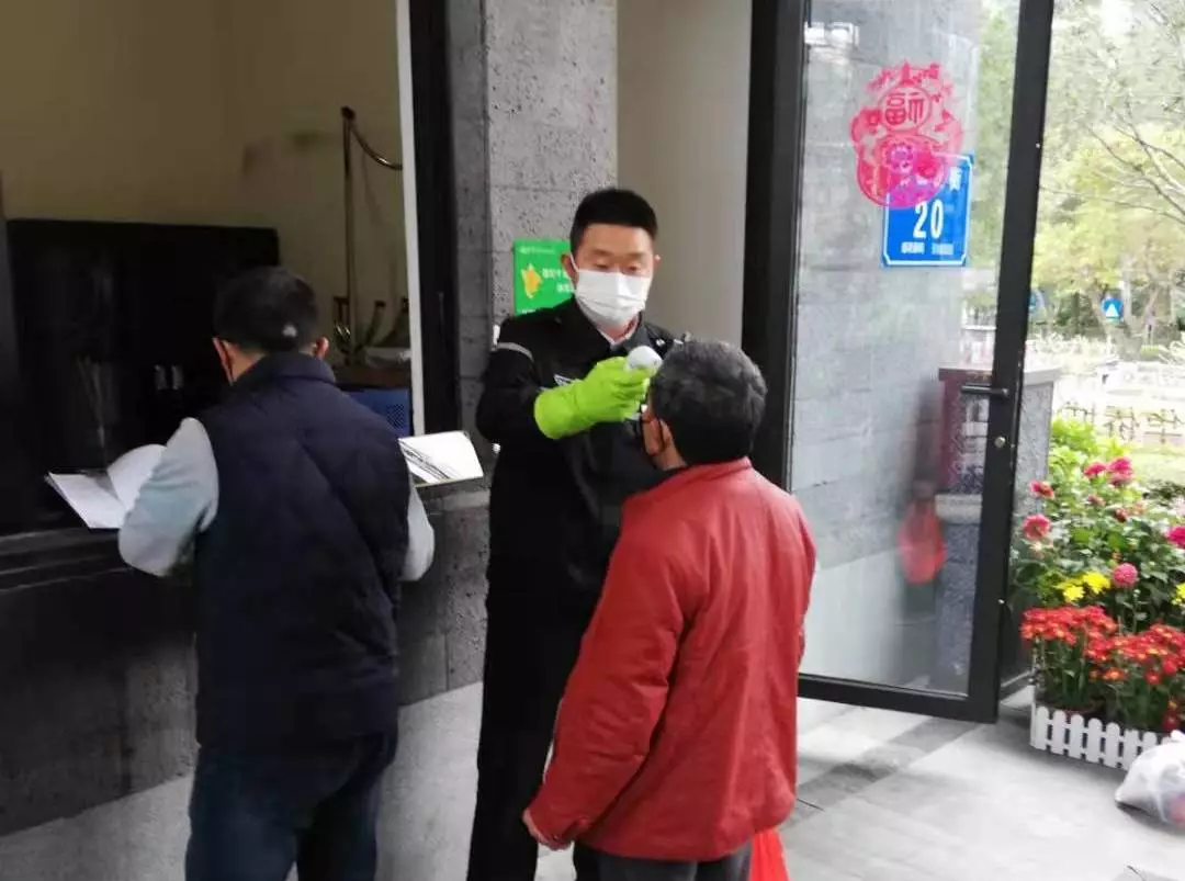 對車輛和人員出入取消刷卡自動開閘,改為手動出入開閘,禁止外來人員出入;門口、車道崗配備測溫儀,對所有進出小區(qū)人員進行體溫測量,并做好登記。