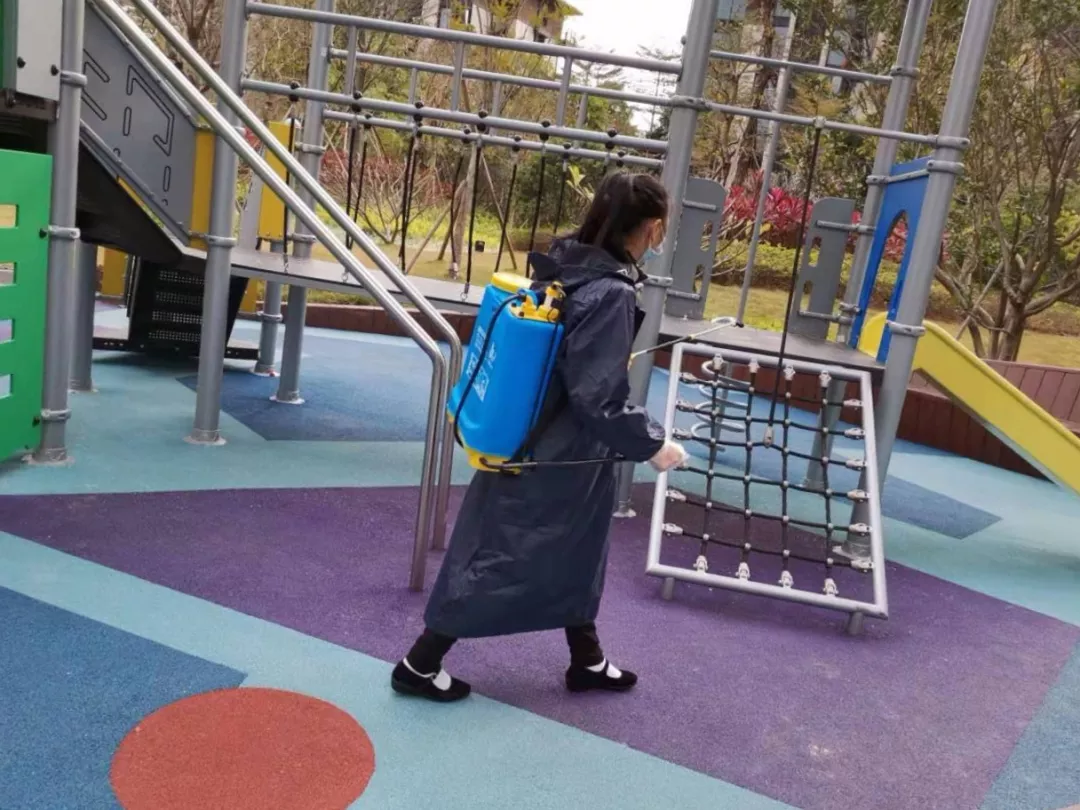 為防止病毒滋生,根據(jù)小區(qū)情況做好消殺方案,加大消殺頻次及范圍,對小區(qū)樓道、園區(qū)、兒童游樂場、垃圾放置點進行反復,全面消殺消毒工作。