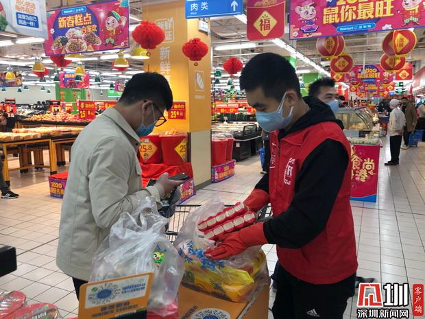 見圳客戶端·深圳新聞網(wǎng)2020年1月31日訊(見圳客戶端、深圳新聞網(wǎng)記者 胡津瑋)戴上口罩、手套,再穿上標(biāo)志性的紅色馬甲,市食藥志愿服務(wù)總隊(duì)的志愿者們紛紛走上超市的各個(gè)崗位,清理貨品、補(bǔ)貨、對(duì)購(gòu)物車購(gòu)物籃進(jìn)行清潔消毒、為來購(gòu)物的市民測(cè)量體溫…據(jù)了解,由于春節(jié)期間各大商超缺少人手,在市市場(chǎng)監(jiān)管局與團(tuán)市委的指導(dǎo)下,市食藥志愿服務(wù)總隊(duì)迅速調(diào)動(dòng)全市在深的食品藥品安全志愿者,成立了由近300名食品藥品安全志愿者組成的春節(jié)“菜籃子”志愿者保障工作小組,為全市各大商超提供志愿服務(wù),全力保障市場(chǎng)供應(yīng)、消除市民顧慮,在防控疫情特殊期間注入了紅馬甲的正能量。記者今天便走訪了深圳的一家超市,尋找這批紅色的身影,了解他們一天的工作。