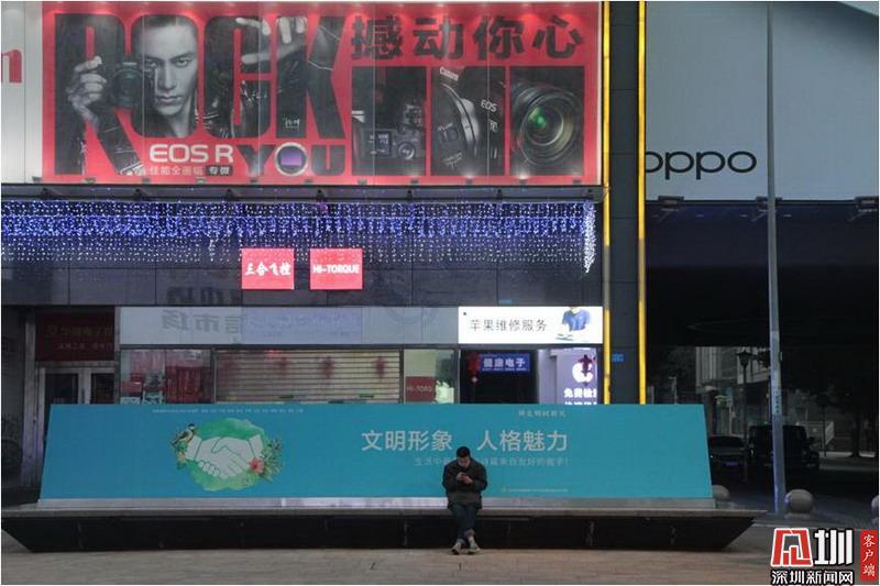 一名市民坐在在華強(qiáng)北電子市場街邊“孤獨”地玩手機(jī)