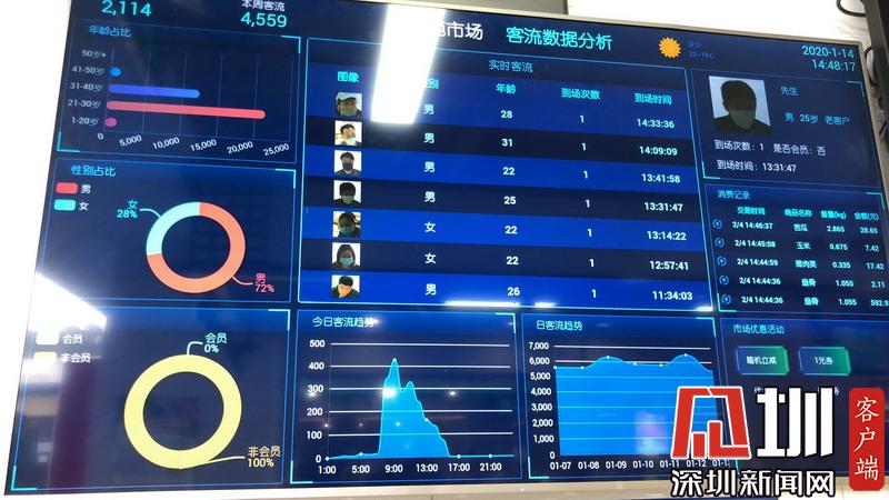 記者在現(xiàn)場看到,新翠苑市場的所有員工均佩戴口罩,市場還將佩戴時間及更換頻次做相應(yīng)的登記?!拔覀円蠊ぷ魅藛T佩戴口罩,同時對市場管理人員、經(jīng)營人員、檔主、市民進行體溫檢測,做好記錄和建檔工作;此外利用智慧監(jiān)管,人臉識別市場人流量和市民臉譜,有效管控市場人流?!毙麓湓肥袌鱿嚓P(guān)工作人員表示。