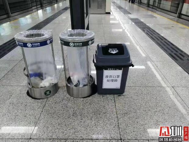 深圳地鐵設(shè)置廢棄口罩回收箱。