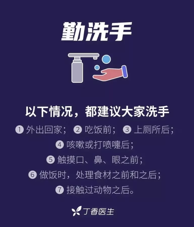 下班后,洗手后佩戴一次性醫(yī)用口罩外出,回到家中摘掉口罩后首先洗手消毒。用7步洗手法清潔雙手,步驟如下: