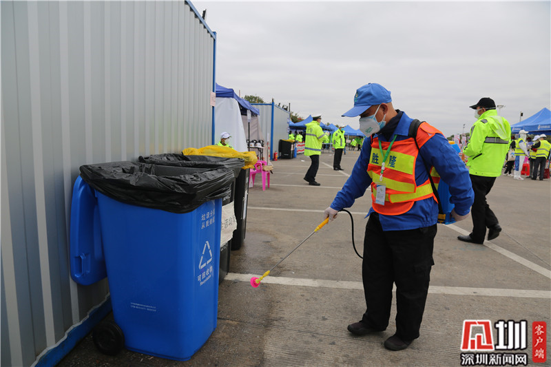 “全副武裝”后,龍崗區(qū)文化廣電旅游體育局局長劉德平(右)準(zhǔn)備上一線。