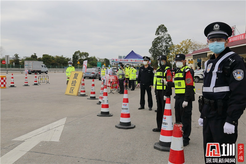 民警李勝仁(右一)在深汕高速龍崗服務(wù)區(qū)(金錢坳立交)檢查卡點(diǎn)值守。