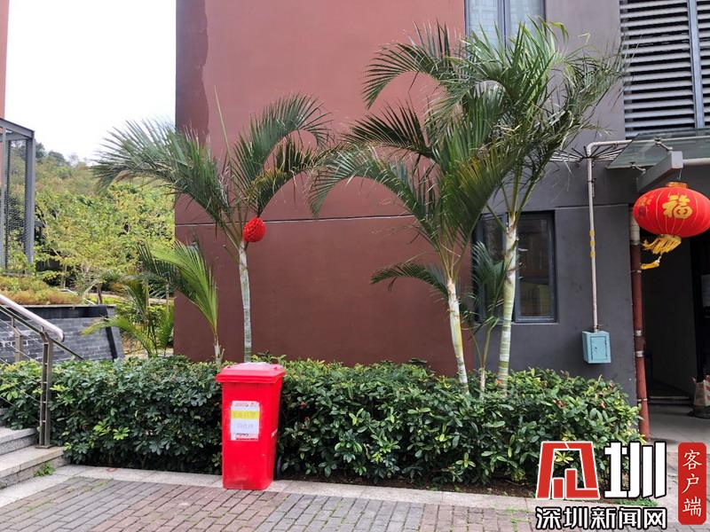 羅湖蓮馨家園小區(qū)的廢棄口罩回收桶與其他分類的垃圾回收桶分開擺放。