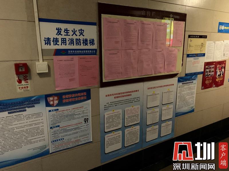 龍華龍悅居三期每一棟兩個單元樓下都貼有相關(guān)疫情通知和告示。