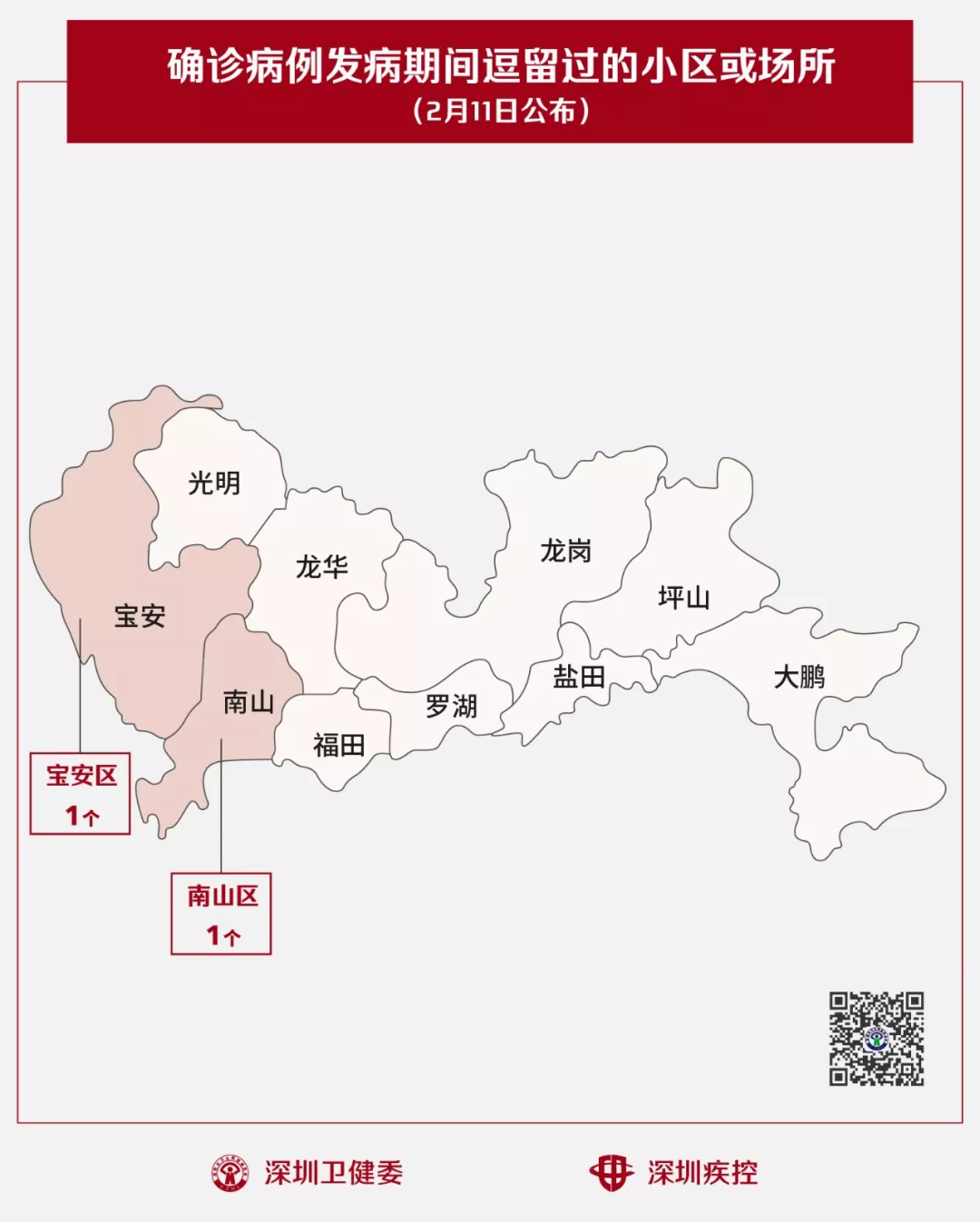 經過疾控專業(yè)人員的流行病學調查確認,2月11日,深圳公布的有新確診病人發(fā)病期間逗留過的小區(qū)(場所),新增了2個。