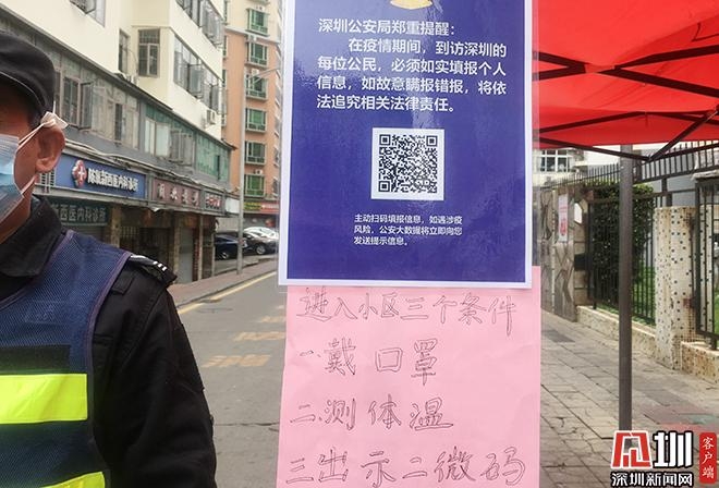 在沙頭角保稅區(qū)第一生活區(qū)原為開放式小區(qū),記者發(fā)現(xiàn),疫情期間,該小區(qū)只保留一個出入口,并在出入口設(shè)置了疫情監(jiān)測點(diǎn),并明確張貼了標(biāo)有進(jìn)出小區(qū)條件的宣傳語:戴口罩、測體溫、出示二維碼。記者向執(zhí)勤人員表示:“我不在這個小區(qū)居住,但需要到超市買點(diǎn)東西,可以進(jìn)嗎?”執(zhí)勤人員告訴記者,只要戴好口罩,體溫監(jiān)測正常,出示登記過身份的二維碼就可以進(jìn)去。
