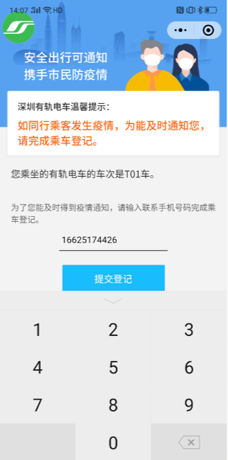 第三步:輸完其他乘客手機(jī)號(hào)后,收起鍵盤,再點(diǎn)擊【提交登記】按鈕即可完成登記。