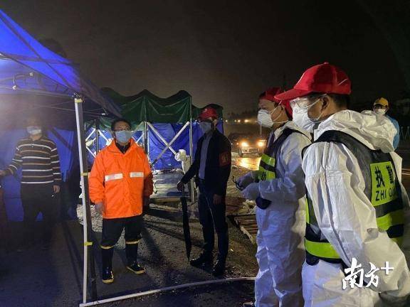 坪地街道黨工委書記曾憲旺冒雨夜巡檢查點(diǎn),了解當(dāng)日車流量以及重點(diǎn)區(qū)域人員返深情況,同時(shí)慰問一線執(zhí)勤人員及志愿者。