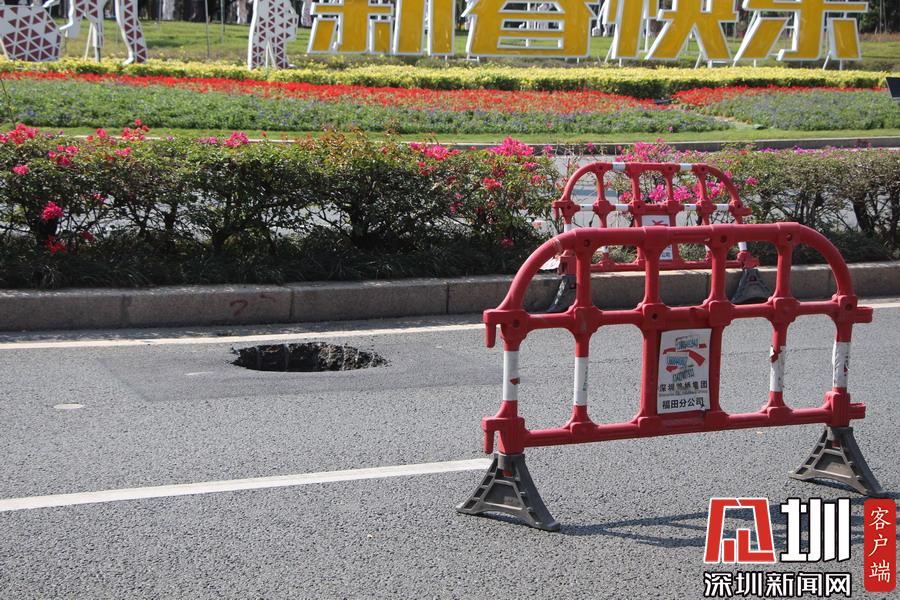 深圳市民廣場前一輔路驚現(xiàn)直徑一米坑 有關(guān)部門:正加緊修復(fù)