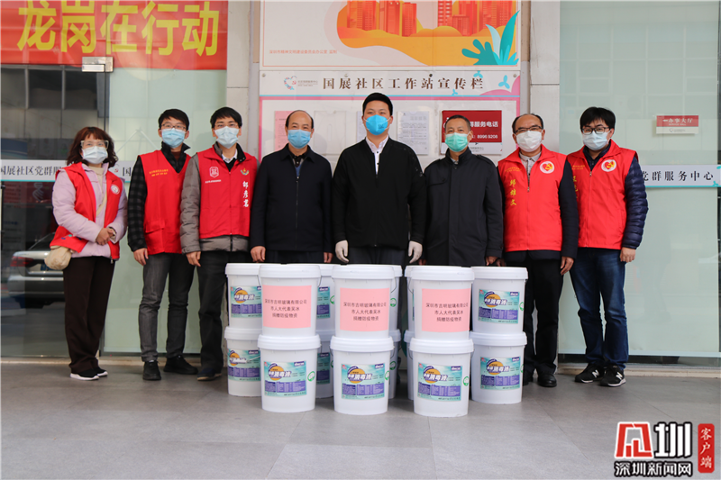 經(jīng)協(xié)調(diào),2月17日下午,深圳市人大代表、廣東吉明玻璃工程有限公司總經(jīng)理吳冰慷慨相助,向國展社區(qū)工作站熱心捐贈消毒液640斤、一次性防護衣85套等防護物資,價值1.2萬元,幫助社區(qū)疫情防控工作解決實際困難。
