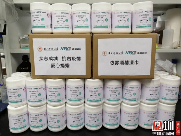 據(jù)悉,首批捐贈(zèng)的護(hù)目鏡防霧酒精濕巾數(shù)量為6000張(100桶)。該濕巾由孫大陟和南科大首屆畢業(yè)生張至共同發(fā)起創(chuàng)立的深圳南科新材科技有限公司和孫大陟課題組共同緊急研發(fā)趕制,簡(jiǎn)單擦拭后可保證護(hù)目鏡鏡片長(zhǎng)時(shí)間不起霧,對(duì)人體人眼無毒無害,且能起到有效消殺病菌作用。每片濕巾可至少擦拭一副護(hù)目鏡,防霧效果可至少持續(xù)一天,大大節(jié)省了醫(yī)護(hù)人員清潔裝備的時(shí)間,為爭(zhēng)分奪秒抗擊疫情提供了有利條件。