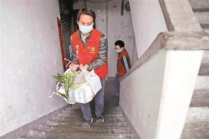 該小區(qū)不設(shè)電梯,他們每天跑進跑出、跑上跑下幾十趟,從早上7時多忙到晚上11時,有時為住戶送的燃氣罐重五六十斤。何洪斌自豪地說:“我們這個服務(wù)隊都是年輕力壯,平均年齡30多歲,每次扛幾十斤沒問題,看到居民收到物資后開心,我們也開心,他們的微笑就是對我們最好的回報。”