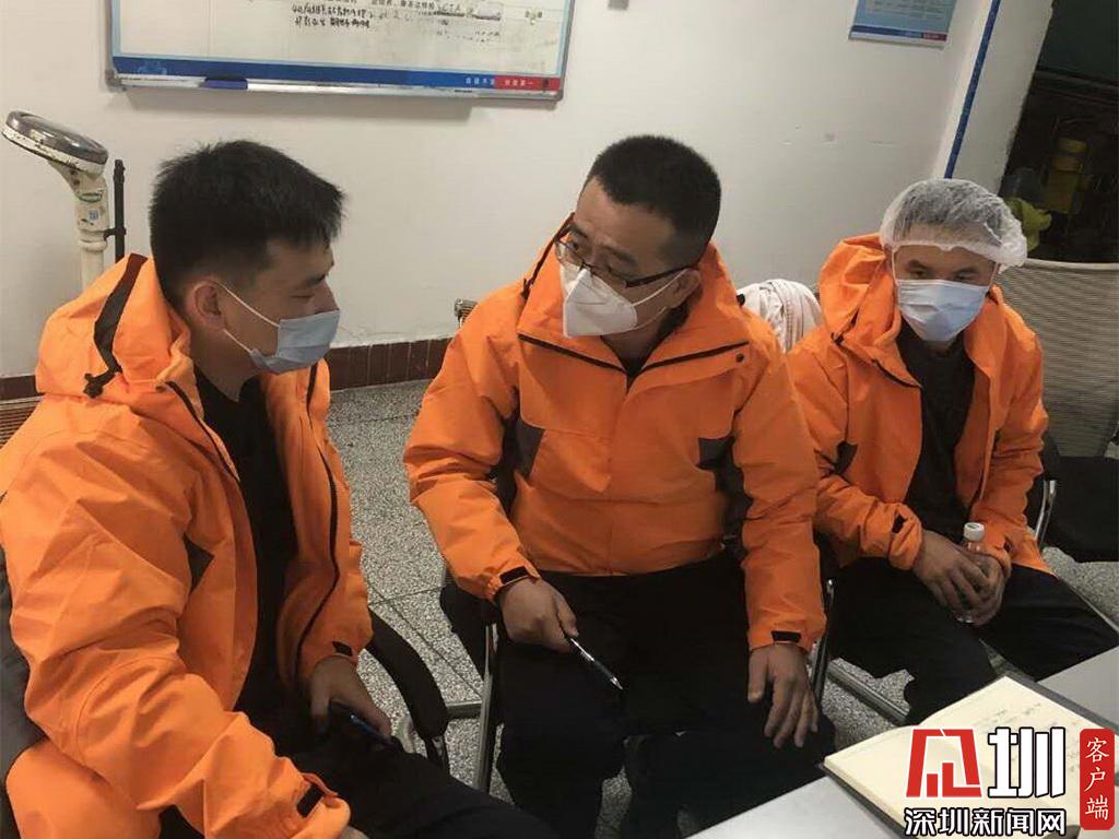 醫(yī)療隊成員蔡軍、張健發(fā)、陳釗軍(從左到右)在探討工作情況