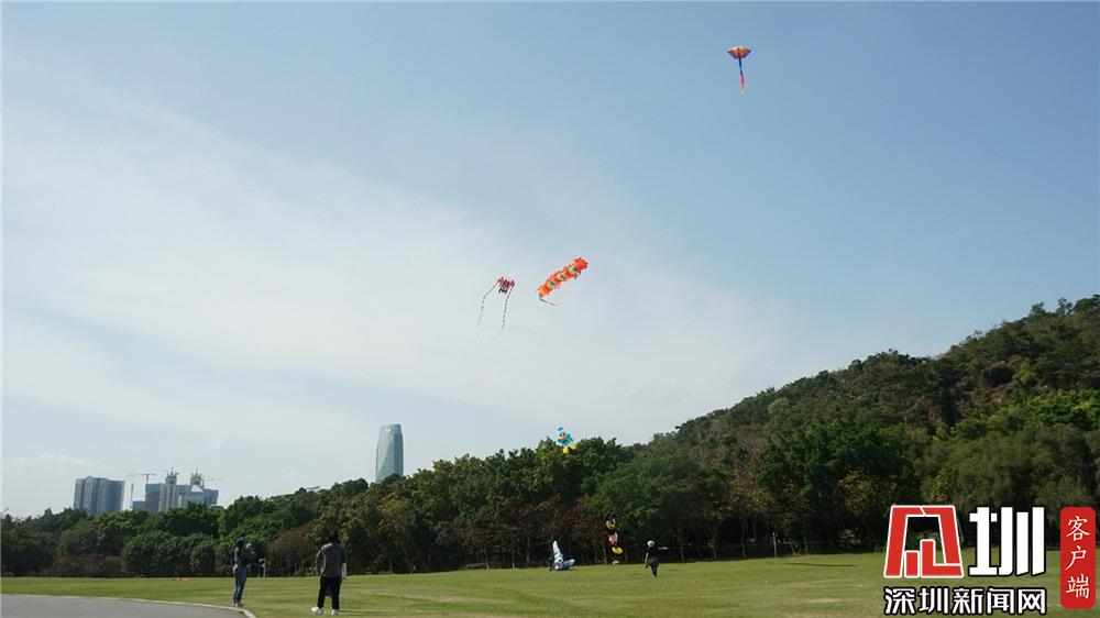 蓮花山公園風(fēng)箏廣場(chǎng)上,不少市民在此放飛風(fēng)箏。