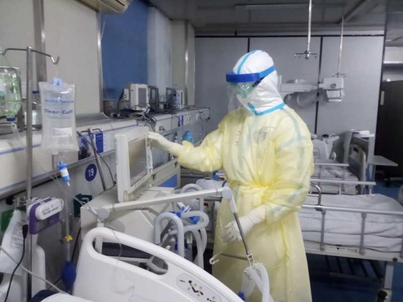 三病區(qū)上下兩層樓,38個病人,我全部過了一遍,任務(wù)圓滿完成。但最危險的事情來了:出病房脫隔離衣。這個環(huán)節(jié)是沒人幫忙的,全靠自己。我跟著指示一步一步做,小心翼翼地避免碰到被污染的防護(hù)裝備。隔離衣還是有點(diǎn)小,幾經(jīng)掙扎,終于脫下。小心小心再小心,還是沒站穩(wěn),腳點(diǎn)了一下地板,馬上把襪子脫下扔掉,再用酒精噴灑腳部。安全第一,這時候沒辦法心疼那雙新襪子。