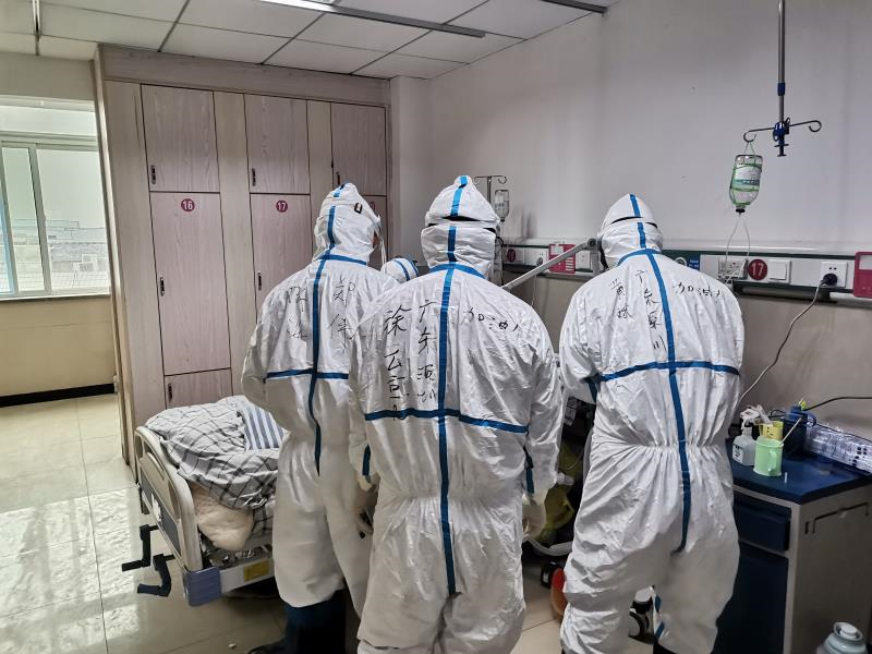 到監(jiān)利后,黃斌和涂云亮被安排到任務(wù)最艱巨的監(jiān)利縣中醫(yī)院重癥病區(qū)上班。在克服了頭一兩天由于穿戴防護服帶來的不適后,兩人很快進入狀態(tài),圍繞明確診斷、評估病情、調(diào)整治療方案,有條不紊地展開工作。