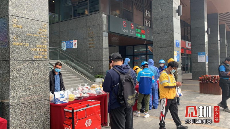 目前,人員用餐還是以外賣為主,科興科學(xué)園的美食街除了服務(wù)本園區(qū)外,也為周邊人員提供用餐服務(wù)。園區(qū)鼓勵(lì)大家盡量線上點(diǎn)餐,由相關(guān)人員下樓統(tǒng)一取餐,再分散自行用餐,避免人員聚集。