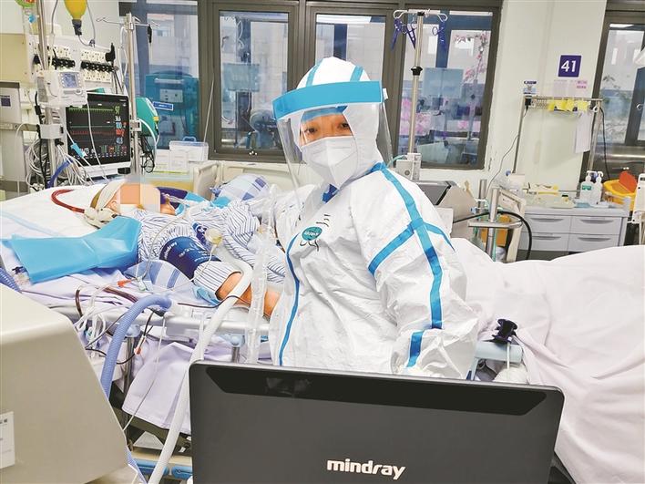 疫情早期,形勢嚴(yán)峻,隨著確診病人一批批收治,重癥病房很快進(jìn)入超負(fù)荷狀態(tài)。“最高峰的時候,我們接診了40多名患者,整個ICU病房都住滿了。重癥、危重癥患者有個特點(diǎn),就是病情變化特別快,一兩個小時病患的情況就差很遠(yuǎn),這就要求我們必須時刻嚴(yán)密監(jiān)測。因此,每次在班上,我都處于高度緊張的狀態(tài),不停地要去觀察分析各種數(shù)據(jù),要及時對患者治療進(jìn)行調(diào)整,加上穿著厚厚的防護(hù)服,處于缺氧狀態(tài),有時候確實(shí)感覺到蠻累的?!倍@樣超速運(yùn)轉(zhuǎn)的值班,一直持續(xù)了一個多月。
