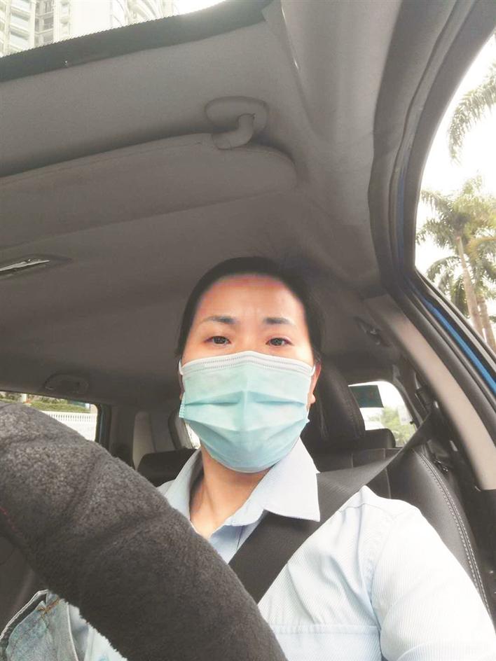 史美娟今年50歲,河南人,9年前隨丈夫來(lái)深,當(dāng)起了出租車司機(jī),一直干到現(xiàn)在。兩三年前,丈夫回老家忙生意,平時(shí)就由她一人照顧女兒。母女倆關(guān)系親近,疫情發(fā)生后,女兒每天準(zhǔn)備好酒精,守在家門口等她下班回家?!皨?,轉(zhuǎn)一圈,我給你消毒!”史美娟卻難免有些擔(dān)心。每次她都匆匆接過(guò)酒精,讓女兒離自己遠(yuǎn)一點(diǎn)。家里老人也害怕,不同意史美娟出車。但史美娟始終堅(jiān)持在一線營(yíng)運(yùn)。每天早上開車前,史美娟會(huì)先將全車消毒一遍,戴上雙層口罩,開車時(shí)打開四個(gè)窗戶,保持通風(fēng)。每位乘客下車后,史美娟都會(huì)再噴一遍消毒液,遇上現(xiàn)金支付的,還要注意用酒精消毒接過(guò)錢的手套。除了公司每日發(fā)放的口罩,她還給乘客多準(zhǔn)備了幾份,不過(guò)疫情以來(lái)她幾乎沒(méi)有碰到過(guò)不戴口罩的乘客。