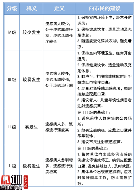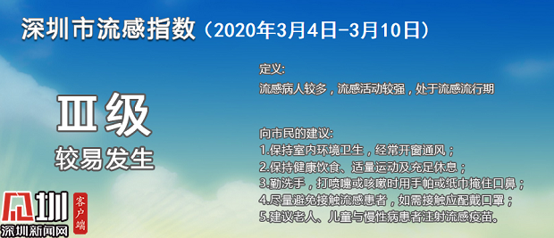 3月份以來,深圳均顯示為Ⅲ級(較易發(fā)生),目前深圳處于流感流行期。