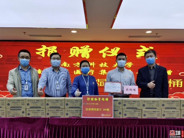 南方科技大學(xué)向南山區(qū)醫(yī)療集團(tuán)總部 捐贈(zèng)240桶自主研發(fā)的防霧酒精濕巾