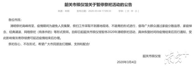 韶關(guān)、肇慶等地發(fā)出倡議書,疫情期間,堅(jiān)持少出門、不串門、不聚會(huì)、戴口罩、勤洗手,倡導(dǎo)通過(guò)家庭分散追思、網(wǎng)絡(luò)祭祀、家庭悼念等形式祭拜,不現(xiàn)場(chǎng)祭拜、不踏青祭拜。