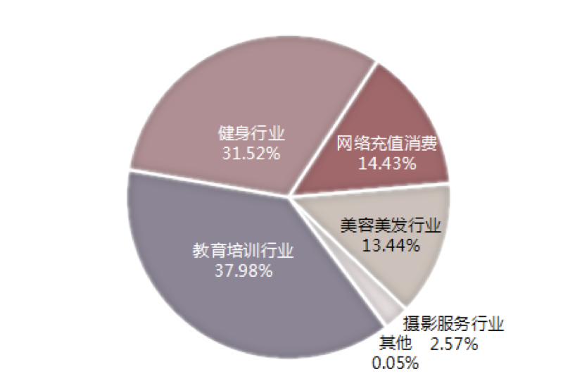 圖52019年預(yù)付式消費(fèi)各行業(yè)投訴量占比