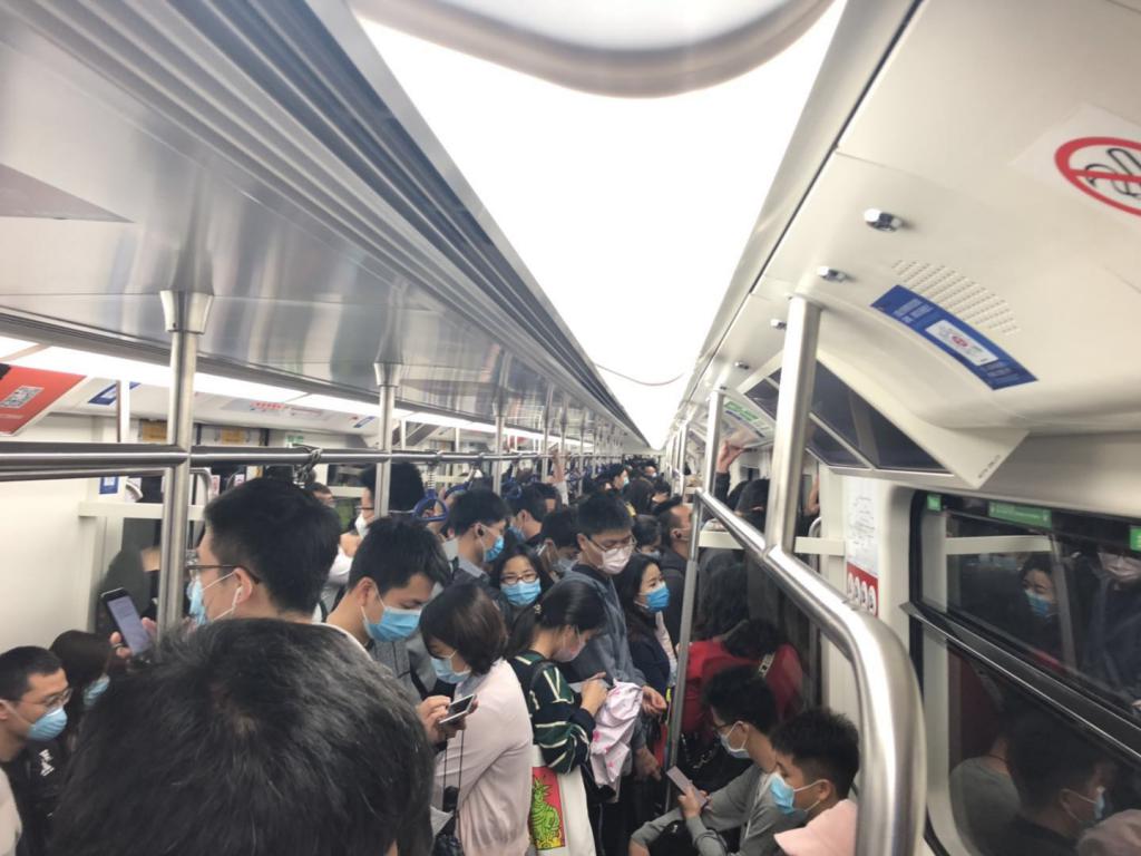 ▲地鐵4號(hào)線(xiàn)早高峰相對(duì)擁擠。