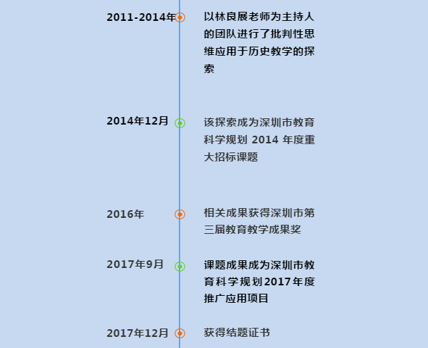 《批判性思維在歷史教學中的實踐研究》是以林良展老師主持的2006年廣東省中小學教學研究“十一五”規(guī)劃課題《新課程下歷史活動課實施與管理研究》(成果獲2010年國家教育部基礎(chǔ)教育課程改革教學研究成果獎)為基礎(chǔ),進一步研究獲得的成果。