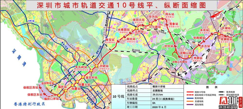 地鐵10號線起于福田口岸站,途經(jīng)福田區(qū)、龍崗區(qū),止于雙擁街站,線路全長29.31公里,共設(shè)24座車站,全部為地下車站。地鐵10號線兼具干線和局域線功能,是深圳市首條南北向采用8A編組的線路,并預(yù)留“南聯(lián)北拓”條件,成為又一條“南北動脈”,建成后,福田口岸到平湖僅用45分鐘即可到達,將大大緩解福田中心區(qū)至坂田段的交通壓力。