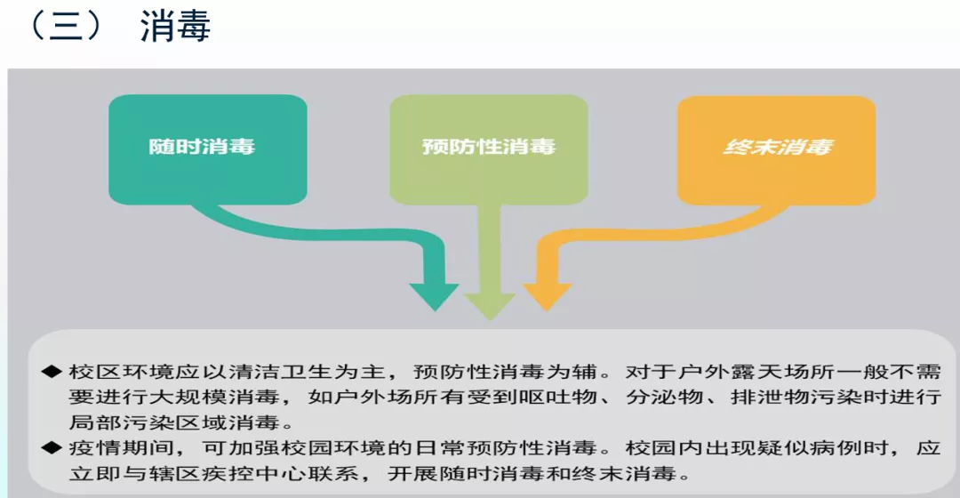 二是實(shí)施校園封閉式管理。做好校園衛(wèi)生整治、“四害”消殺和重點(diǎn)場所的預(yù)防性消毒。設(shè)置相對(duì)獨(dú)立的健康觀察區(qū)(室)、設(shè)置洗手設(shè)施、儲(chǔ)備足夠的防護(hù)用品等措施。