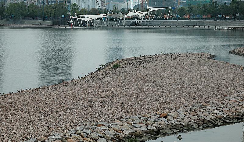 記者在采訪中了解到,2017年初,深圳觀鳥人士發(fā)現(xiàn)人才公園建設(shè)接近尾聲,人工島嶼種植了密集的植物。深圳市觀鳥協(xié)會隨即向人才公園建設(shè)主管部門提出《人才公園鳥類棲息地改善建議》。相關(guān)政府部門在征詢了廣東內(nèi)伶仃福田國家級自然保護(hù)區(qū)管理局、市野生動植物保護(hù)管理處、南山區(qū)城管局和深圳市觀鳥協(xié)會的意見和建議后,就協(xié)調(diào)處理人才公園水鳥棲息地等問題達(dá)成了一致意見,決定在適當(dāng)位置增加浮灘,增加水鳥停留棲息的空間。整改后的人工碎石灘,很快便吸引了大量的鸻鷸類候鳥前來停棲。"這個(gè)人工石灘的距離適中,既方便人類觀察,又不至于讓鳥兒感覺受到威脅,這么多年來,人與候鳥之間一直相安無事,鳥兒也已經(jīng)習(xí)慣了這里的環(huán)境,所以它們才能在人類的眼皮底下安心地打盹兒。""PT"向記者介紹說。