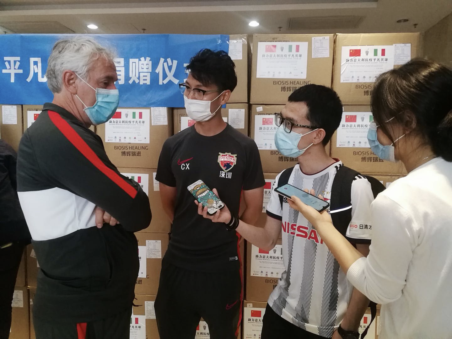 “感謝深圳?!碑?dāng)天,AC米蘭俱樂部前教練、深圳佳兆業(yè)足球隊(duì)主教練多納多尼作為在深意大利人代表也來到了活動(dòng)現(xiàn)場。他表示,來深圳不到一年,已經(jīng)深刻感受到深圳的城市魅力。“中國在這次抗擊疫情的過程中表現(xiàn)完美,每個(gè)人的一舉一動(dòng)不僅是為自己,更是為別人,這非常令我感動(dòng)。此次捐贈(zèng)對(duì)于意大利來說十分重要,我代表我的祖國向大家表示由衷的感謝?!倍嗉{多尼在現(xiàn)場動(dòng)情地說。(記者 許舜鈿)