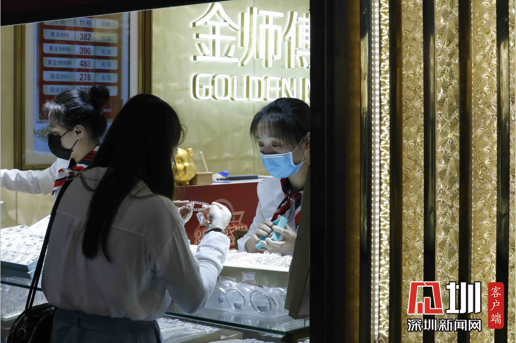 東門步行街的手機配件門店前,兩位市民正在選購。