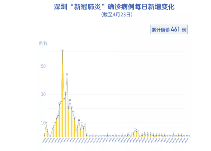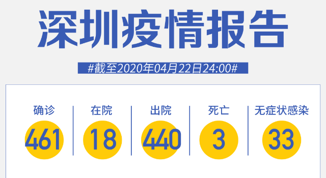 截至4月22日24時,深圳累計報告新冠肺炎病例461例。4月22日當天新增出院1例。