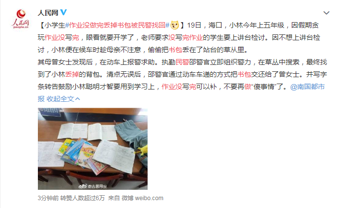 正在TA竊喜之時(shí),警察蜀黍帶著書包就來(lái)了。
