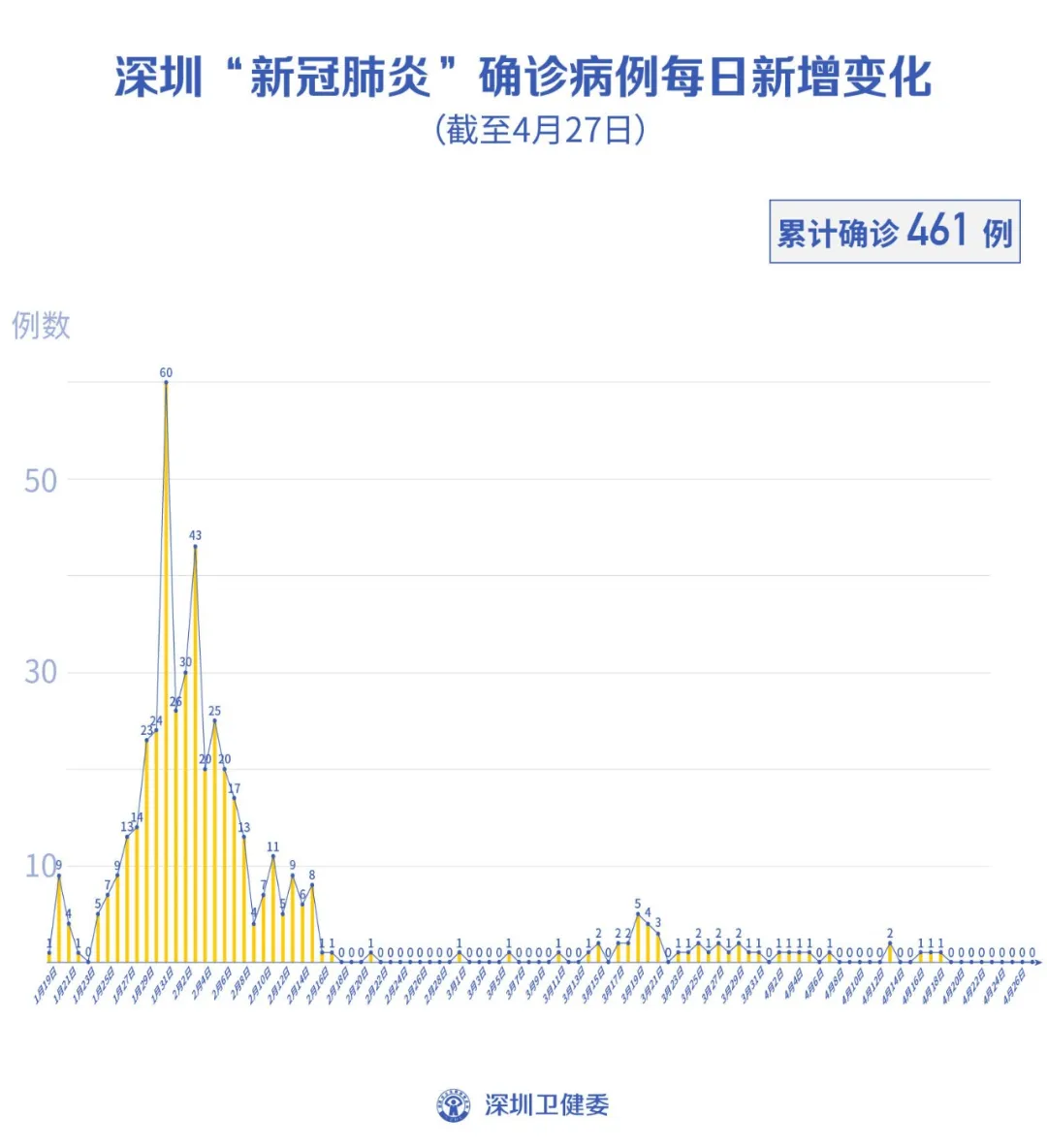 截至4月27日24時(shí),深圳累計(jì)報(bào)告新冠肺炎病例461例。4月27日當(dāng)天新增無癥狀感染者1例,出院1例。