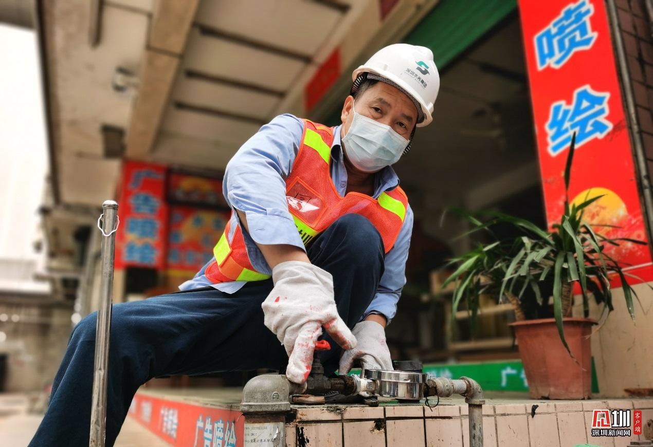福田分公司福中水務(wù)所維修工陳國(guó)明,正對(duì)水表進(jìn)行關(guān)停,