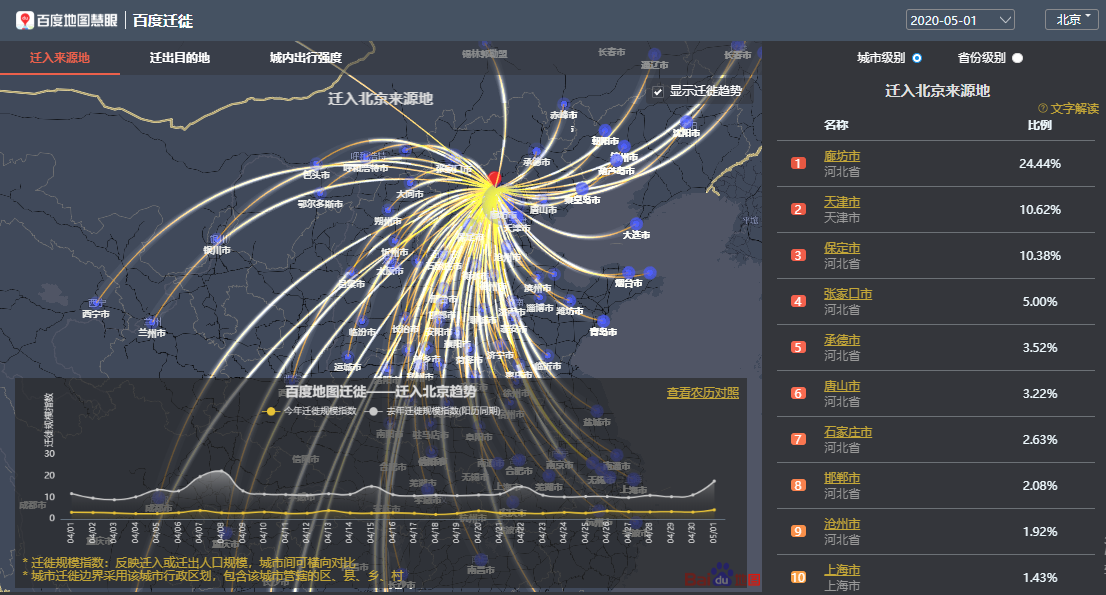 百度地圖遷徙大數(shù)據(jù)平臺-遷入北京來源地