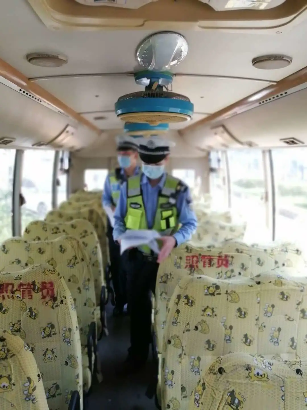 查“四證”(校車許可、駕駛證、交強(qiáng)險(xiǎn)、行駛證),重點(diǎn)檢查校車是否為允許使用的2類校車,檢查校車駕駛?cè)耸欠窬邆湫\囻{駛資格;
