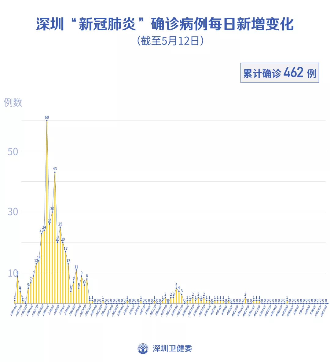 截至5月12日24時(shí),深圳累計(jì)報(bào)告新冠肺炎病例462例。