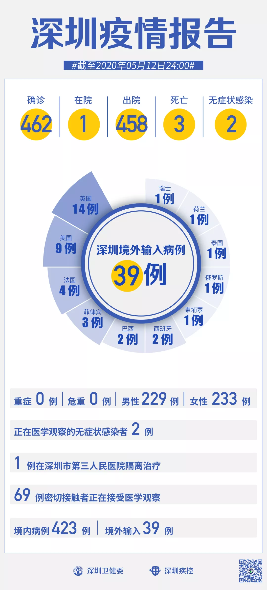 截至5月12日24時(shí),深圳累計(jì)報(bào)告新冠肺炎病例462例。