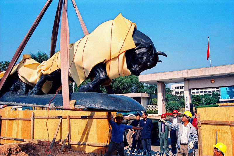 在深南大道,深圳市委大院門前,有一座深圳人最熟悉的銅雕——“孺子?!钡袼埽灿腥朔Q它為“拓荒?!?。它重4噸、長5.6米、高2米、基座高1.2米、以花崗石磨光石片為底座;牛頭抵地,四腿后蹬,全身緊繃,肌肉線條極具張力,給人竭盡全力的負重感;牛身后則拉起一堆腐朽樹根。這座銅雕造型鮮明地體現出深圳人勇于開拓、大膽創(chuàng)新、無私奉獻、奮勇前進的精神。