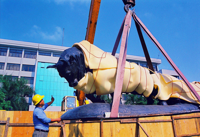 1999年2月6日,深圳“孺子?!钡袼苓w移到深圳市委大院門前。(組圖)(攝影:韋建誠)